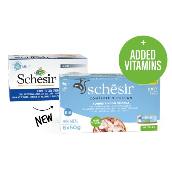 Schesir Multipack sú chutné konzervy pre dospelé mačky z tuniaka a morského vlka v želé.