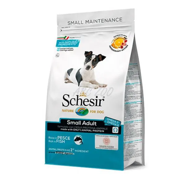 Schesir je prírodné monoproteínové krmivo s tuniakom, sleďom a ryžou pre malé plemená psov.