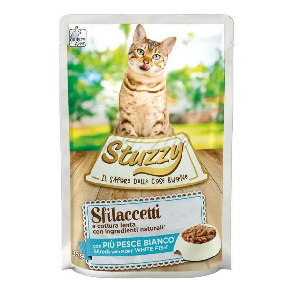 Stuzzy Cat Shreds trhané mäso z bielych druhov rýb 85 g