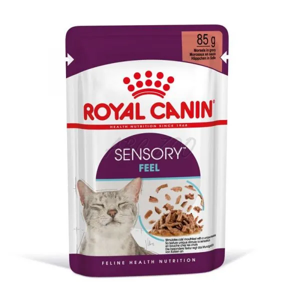 Pohoda vašej mačky sa zlepší, keď je jej strava nielen výživná, ale aj zmyslovo pestrá. Royal Canin® Sensory Feel je vysoko atraktívna receptúra s jedinečnou textúrou navrhnutá tak, aby stimulovala jemné zmysly vašej mačky prostredníctvom pocitu v ústach (pocit, ktorý jedlo stimuluje).