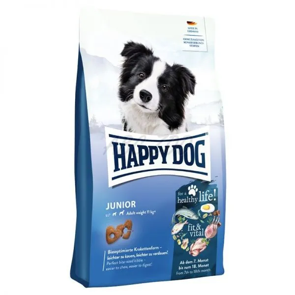 Happy Dog Fit & Vital Junior je kompletné suché krmivo podporujúce zdravý rast mladých psov stredných a veľkých plemien.