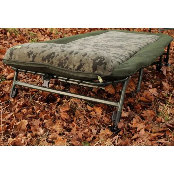 Luxusné osemnohé lehátko s dvojitým matracom. Vo vnútri lehátka je ukrytý veľmi odolný samonafukovací matrac s ventilom, prístupným zo zadnej strany vankúša. Nad týmto matracom sa nachádza ďalšia výplň z dutých vlákien, prekrytá hrejivým a pohodlným fleecovým poťahom v unikátnom CamoCODE dizajne. Táto kombinácia zaisťuje doposiaľ nepredstaviteľný komfort aj tepelnú izoláciu. Lehátko je 100% ploché vďaka konštrukcii rámu bez použitia kĺbu. Pokročilý napínací systém v strednej časti umožňuje zvýšiť celkovú "tvrdosť" matraca. Samovýsuvné nohy sa ovládajú jednoduchým stlačením aretačnej páčky a sú osadené unikátnymi Mivardi pätkami.