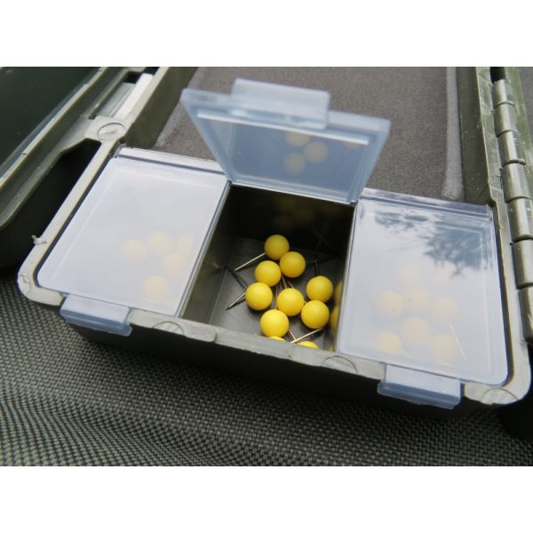 Luxusná objemná taška pre špecialistov na lov kaprov s mnohými potrebnými doplnkami v základnej výbave. Použitý materiál B-POL600D garantuje dlhú životnosť, umývateľnosť a nepremokavosť. Pevné veko so špeciálnym tvarovaním slúži ako stolček na príslušenstvo. Nohy stolčeka sú integrované v rohoch tašky. Bohato polstrovaný popruh zaisťuje komfortné prenášanie. V cene tašky je dodávaný aj dvojitý zásobník na nadväzce, veľká systémová krabica a tri malé krabičky na príslušenstvo. Všetko z nového radu Mivardi Carp Accessories. Ďalším doplnkom tašky je osem kvalitných dóz na dipy s dôkladne tesniacim uzáverom.