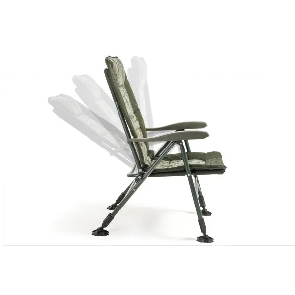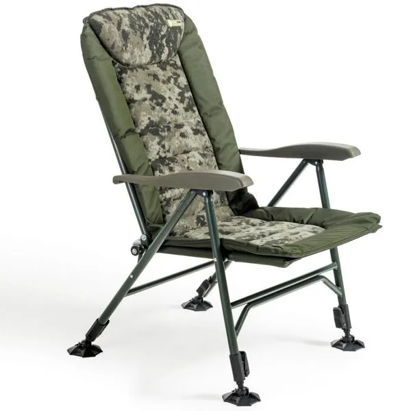 Luxusná verzia nášho najpredávanejšieho kresla Comfort Quattro s extrémne pohodlným fleecovým matracom v modernom dizajne CamoCODE. Využíva obľúbený a úplne spoľahlivý systém sklápania operadla pri nadvihnutí opierok rúk. Je postavené na extrémne ľahkom a pevnom hliníkovom ráme s nosnosťou 160 kg. Kreslo je vybavené novo navrhnutými pätkami proti zaboreniu a novými zámkami aretácie nôh v unikátnom dizajne Mivardi. Štyri samovýsuvné teleskopické nohy je možné ovládať jednoduchým stlačením páčky aretácie.