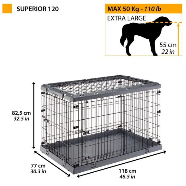 Ferplast SUPERIOR je klietka s 2 dvierkami a otváraním z vrchnej časti pre veľké plemená psov (do 50 kg).