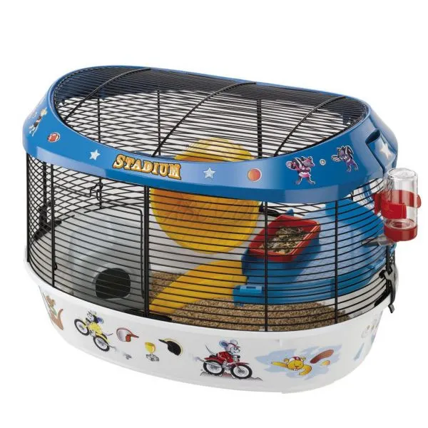 STADIUM je nová vzrušujúca klietka pre sýrske a dospelé trpasličie škrečky. Vybavená príslušenstvom, ktoré poskytuje komfortné prostredie pre zdravé cvičenie. Klietka STADIUM je dodávaná s farebnými a veselými samolepkami. Vrchná časť je odnímateľná pre ľahkú údržbu a čistenie.