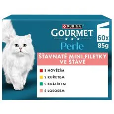 Gourmet Perle kapsičky pre mačky hovädzie, kura, králik, losos v šťave 60x85 g
