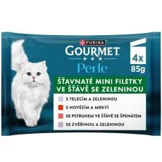 Gourmet Perle kapsičky pre mačky teľacie, divina, hovädzie, pstruh v šťave 4x85 g