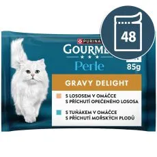 Gourmet Perle Gravy Delight kapsičky pre mačky losos, tuniak v omáčke 48x85 g