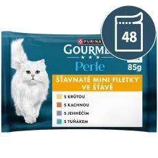 Gourmet Perle kapsičky pre mačky morka, tuniak, kačica, jahňacie v šťave 48x85 g