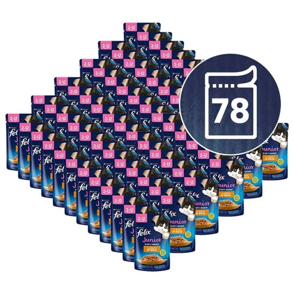 FELIX® Fantastic Junior je rad neodolateľných krmív, ktoré vyzerajú, voňajú a chutia tak lahodne ako jedlo, ktoré by ste sami uvarili! Každá receptúra, vyrobená z kvalitných surovín, obsahuje krehké kúsky v želé, aby sa vaše mačiatko mohlo do chutného krmiva poriadne zahryznúť! Mačiatka potrebujú, počas prvého roka ich života, špeciálnu výživu. Preto je každá receptúra špeciálne navrhnutá tak, aby pokryla 100 % denných potrieb vášho mačiatka. Sú plné bielkovín a vitamínov, aby pomohli rastu silných svalov, kostí a zubov pre šťastnú a nezbednú dospelú mačku! Pozri návod na kŕmenie. To nie je všetko! FELIX Fantastic Junior je dostupný v celom rade lahodných receptúr v šťavnatom želé, aby každý deň uspokojil lásku vášho mačiatka po rozmanitosti. Skutočne chutia tak dobre, ako vyzerajú! FELIX je jednoducho neodolateľný!