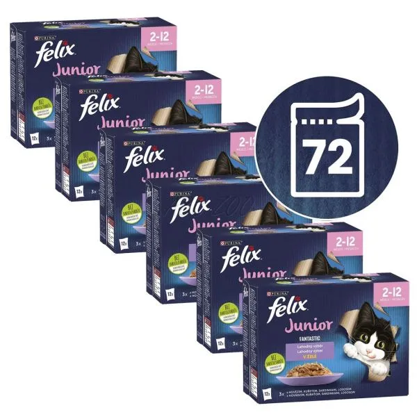 Felix Fantastic Junior kapsičky pre mačiatka hovädzie, kura, sardinky, losos v želé 72x85 g