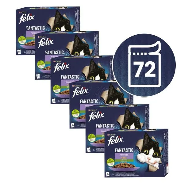 Felix Fantastic kapsičky pre mačky hovädzie, kura, losos, pstruh v želé 72x85 g