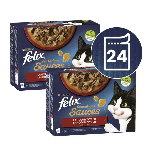 FELIX® Sensations® Sauces je rad neodolateľných krmív vyrobených z kvalitných surovín, ktoré výborne vyzerajú, voňajú a samozrejme lahodne chutia vašej mačke. Každé krmivo FELIX Sensations Sauces obsahuje krehké kúsky pre potešenie vašej mačky servírované v rôzne ochutených omáčkach pre mimoriadnu chuť a lákavú vôňu. Zároveň sú zdrojom omega-6 mastných kyselín a majú správnu kombináciu vitamínov, aby udržali vašu mačku plnú energie a pripravenú na neplechu! Sú plné dobrôt a uspokoja 100 % denných potrieb vašej mačky, keď sú podávané podľa návodu na kŕmenie. To nie je všetko! FELIX Sensations Sauces sú dostupné v celom rade kombinácií chutí v neodolateľných omáčkach! Takže, ak máte to šťastie mať tak senzačnú mačku ako je FELIX, uspokojte každý deň jej lásku po rozmanitosti s krmivom FELIX Sensations Sauces! FELIX je jednoducho neodolateľný!