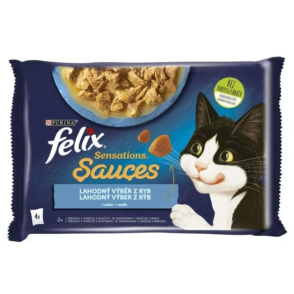 FELIX® Sensations® Sauces je rad neodolateľných krmív vyrobených z kvalitných surovín, ktoré výborne vyzerajú, voňajú a samozrejme lahodne chutia vašej mačke. Každé krmivo FELIX Sensations Sauces obsahuje krehké kúsky pre potešenie vašej mačky servírované v rôzne ochutených omáčkach pre mimoriadnu chuť a lákavú vôňu. Zároveň sú zdrojom omega-6 mastných kyselín a majú správnu kombináciu vitamínov, aby udržali vašu mačku plnú energie a pripravenú na neplechu! Sú plné dobrôt a uspokoja 100 % denných potrieb vašej mačky, keď sú podávané podľa návodu na kŕmenie. To nie je všetko! FELIX Sensations Sauces sú dostupné v celom rade kombinácií chutí v neodolateľných omáčkach! Takže, ak máte to šťastie mať tak senzačnú mačku ako je FELIX, uspokojte každý deň jej lásku po rozmanitosti s krmivom FELIX Sensations Sauces! FELIX je jednoducho neodolateľný!