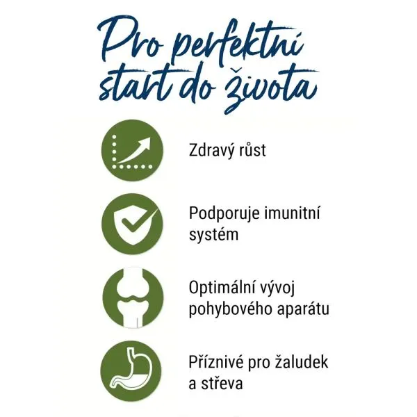 Kompletné krmivo pre citlivé šteňatá stredných a veľkých plemien (hmotnosť nad 11kg v dospelosti) od 1 mesiaca do pol roka.