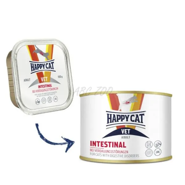Happy Cat Vet je kompletné krmivo v konzerve pre dospelé mačky pri akútnych a chronických ochoreniach žalúdka a čriev.