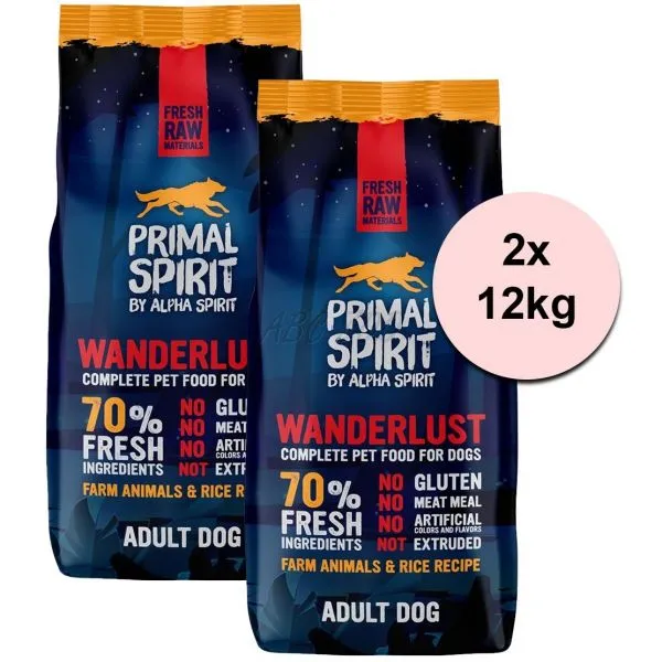 Primal Spirit Dog 70% Wanderlust - kura a losos 2 x 12kg