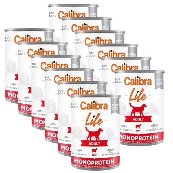 Calibra Dog Life Adult Beef with Carrots – receptúra konzervy s hovädzím a mrkvou je kompletným krmivom, ktoré je určené dospelým psom.