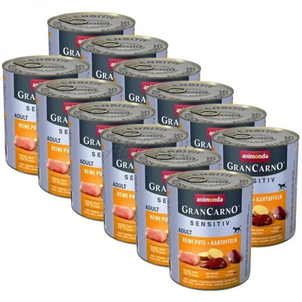 Animonda GranCarno Sensitiv Adult je konzerva s morčacím mäsom a zemiakmi pre dospelé psy všetkých plemien s citlivým trávením.