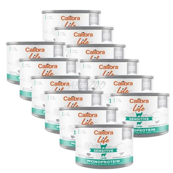 Calibra Cat Life Sensitive Lamb - receptúra ​​konzervy s jahňacím mäsom, ktorá je určená pre dospelé mačky, vhodná aj na citlivé trávenie.