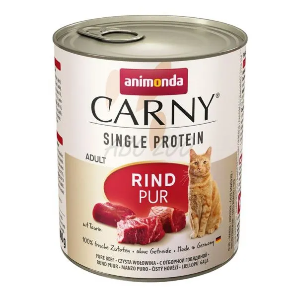 Animonda Carny Adult Single Protein je konzerva obsahujúca len čerstvé mäso z jediného zdroju bielkovín, určené pre dospelé mačky s potravinovou intoleranciou a alergiou.