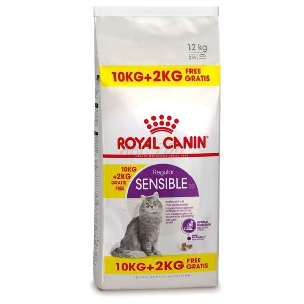 ROYAL CANIN Sensible granule pre mačky s citlivým trávením 10 + 2 kg GRÁTIS