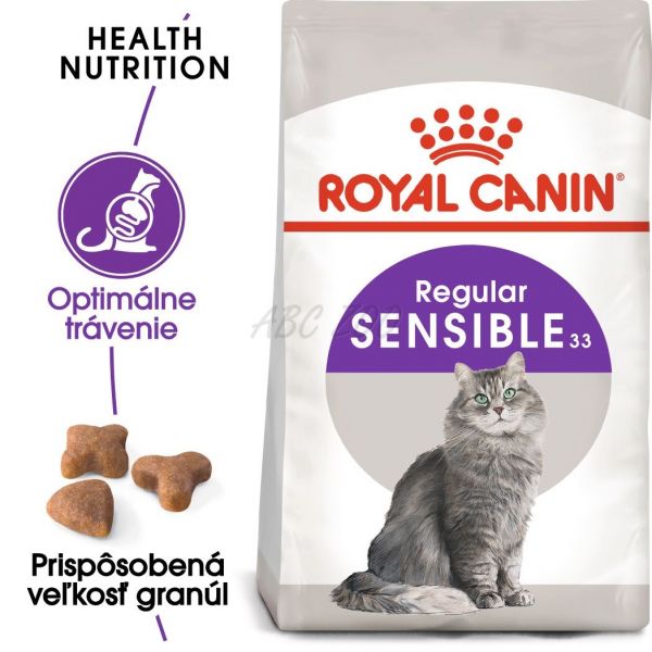 Žalúdky niektorých mačiek sú obzvlášť citlivé na určité typy potravy. Ak je to prípad aj vašej mačky, bude potrebné zmeniť krmivo, aby sa jej žalúdok upokojil. Existuje mnoho živín, ktoré môžu mať blahodarný vplyv na tráviaci trakt vašej mačky. Zloženie krmiva ROYAL CANIN® Sensible je vytvorené pre mačky, ktoré vykazujú známky citlivosti na určité druhy potravy. Obsahuje exkluzívnu kombináciu živín, ktorá posilňuje a podporuje správne trávenie a zdravú črevnú mikroflóru. Toto krmivo je vhodné pre mačky od 1 do 7 rokov.