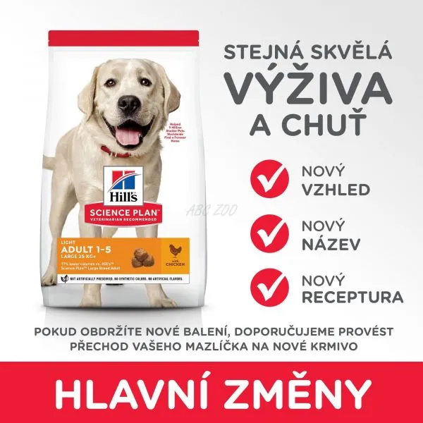 Hill's Science Plan Light Large Breed Adult krmivo pre psov s kuraťom. Viac detailov