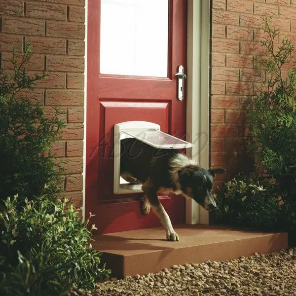Dvierka bielej farby pre psov vhodné na inštaláciu do dreva, skla, tehlovej steny, PVC a kovu.