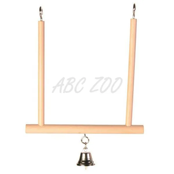 Hojdačka so zvončekom pre vtáky vyrobená z dreva, zavesí sa do klietky pomocou kovových háčikov.
