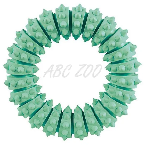 Ťažká hračka pre psov v tvare kruhu s mentolovou príchuťou a výstupkami na povrchu, ktoré masírujú ďasná.