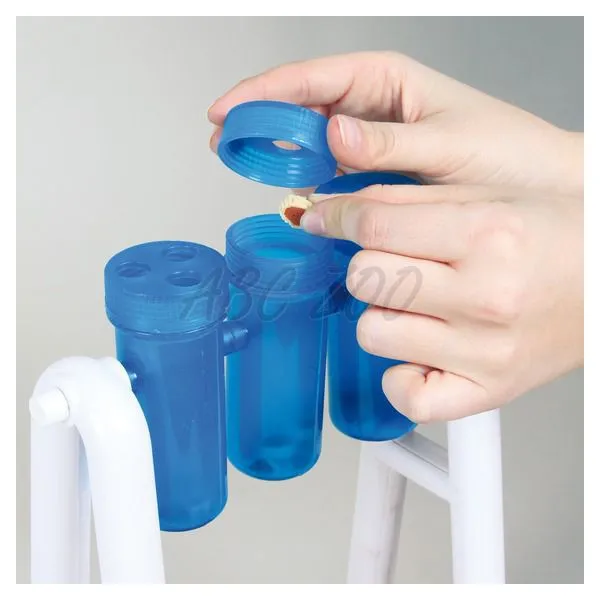 Balenie obsahuje štyri šrubky, štyri podložky, tri otočné prvky na drevenom stojane, s dvoma bielymi plastovými podperami.  Otočné prvky z plastu modrej farby majú dva druhy viečok. Na spodnej časti stojana sa nachádzajú štyri malé protišmykové podložky.