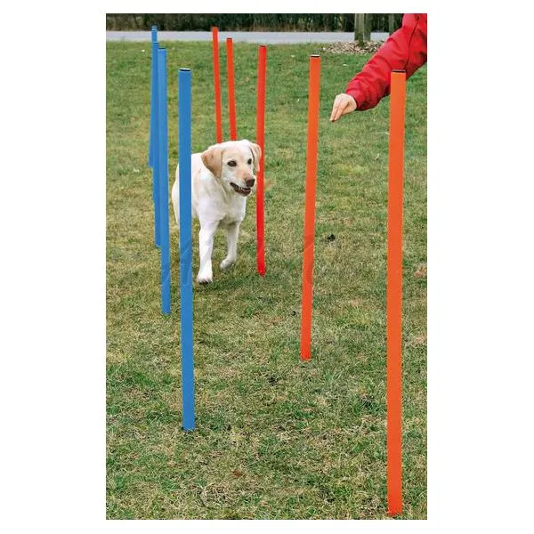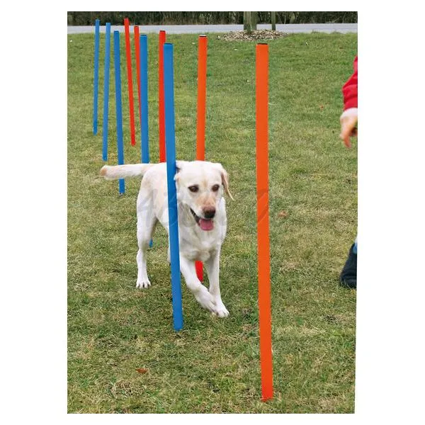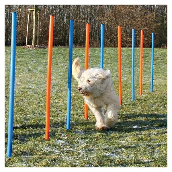 Agility prekážka pre psov, slalomová s možnosťou variovať rozostavenie tyčí.