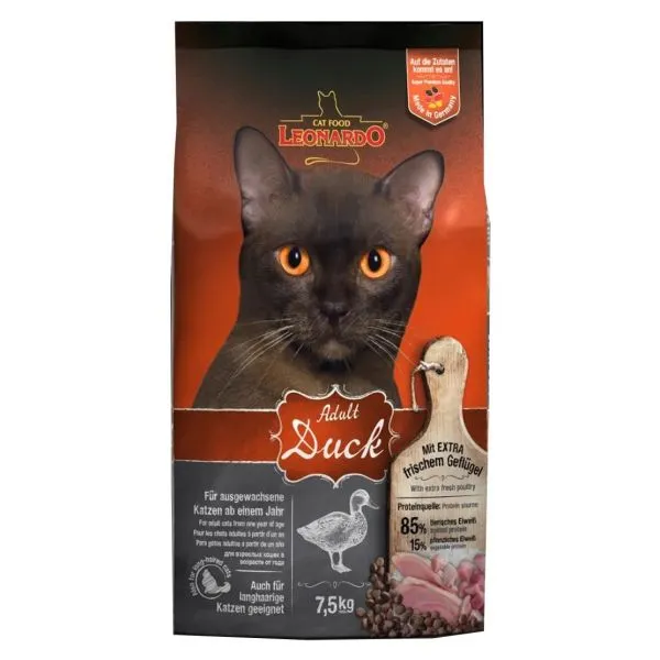 Leonardo Adult Sensitive s kačacinou a ryžou, plnohodnotné krmivo pre dospelé mačky.