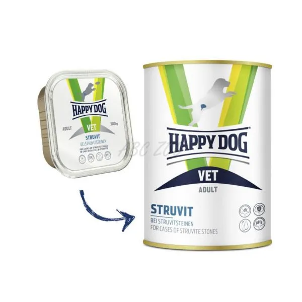 Happy Dog VET Struvit je kompletné diétne krmivo pre dospelých psov, určené na rozpúšťanie struvitových kameňov a zníženie opätovnej tvorby struvitových kameňov.