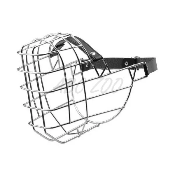 Náhubok pre psov vyrobený zo zinku s koženým remienkom.