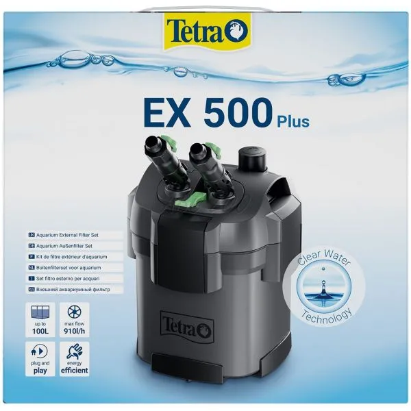 Externý filter Tetra EX 500 Plus, nový typ akváriového filtra od firmy Tetra s kompletným príslušenstvom, vhodný pre akvária s objemom od 100 litrov.