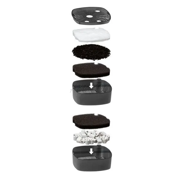 • systém konštrukcie viacerých košov a rôznych filtračných materiálov spoľahlivo čistí vodu v akváriu