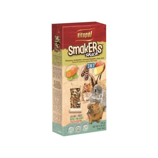 Vitapol Smakers tyčinky pre hlodavce - 1x zeleninová, 1x svätojánska, 1x ovocná. Viac detailov