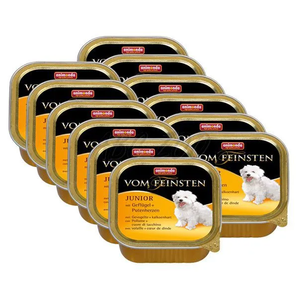 Kompletné krmivo pre šteniatka Animonda Junior - kura a morčacie srdcia v 150g vaničke.