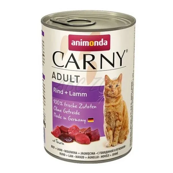 Mäsová konzerva ANIMONDA CARNY ADULT pre mačku s jahňacím a hovädzím mäsom.