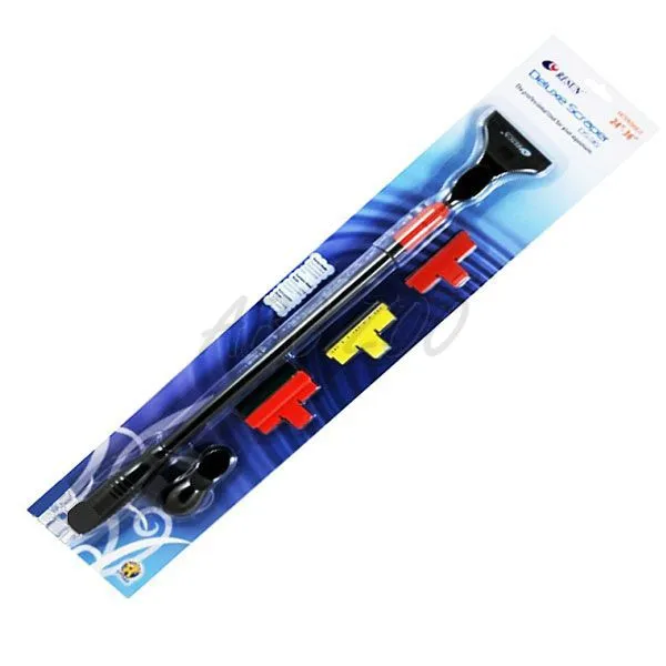 Škrabka z plastu DELUXE SCRAPPER DS 36 - viacúčelová stierka na sklo vďaka vymeniteľným nadstavcom. Jej dĺžka sa dá nastaviť podľa potreby, preto je vhodná aj pre vysoké akvária. Nadstavce sa jednoducho vymieňajú. Rúčka je nastaviteľná od 60 do 90 cm, utiahnutím červeného plastového systému ju uzamknete.