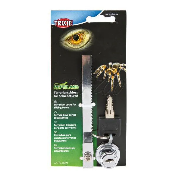 Zámok TRIXIE REPTILAND z nerezovej ocele na posuvné dvere terária s dvoma kľúčami.