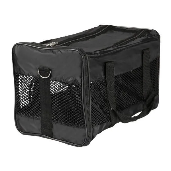 Prenosná taška čiernej farby na zips, zviera je možné v taške pripnúť. Taška má bočné vrecko a je vzdušná.