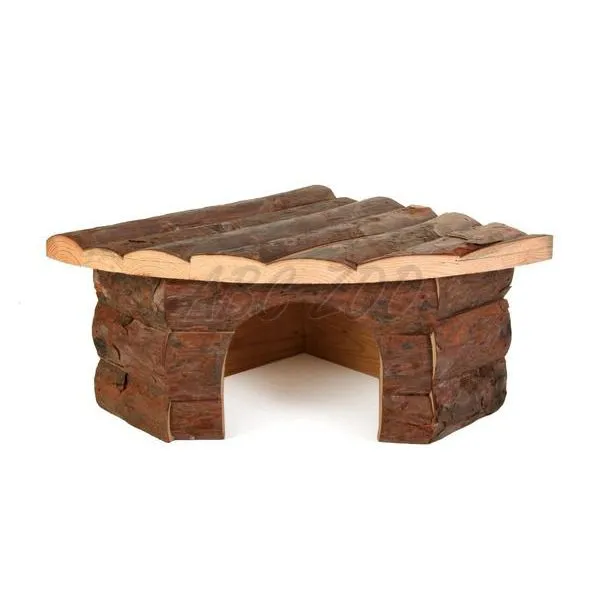 Domček pre hlodavce rohový, vyrobený z dreva. Viac detailov