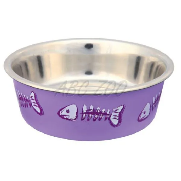 Nerezová miska pre mačky s kostrou ryby, s plastovým poťahom - 0,3l, 12 cm.