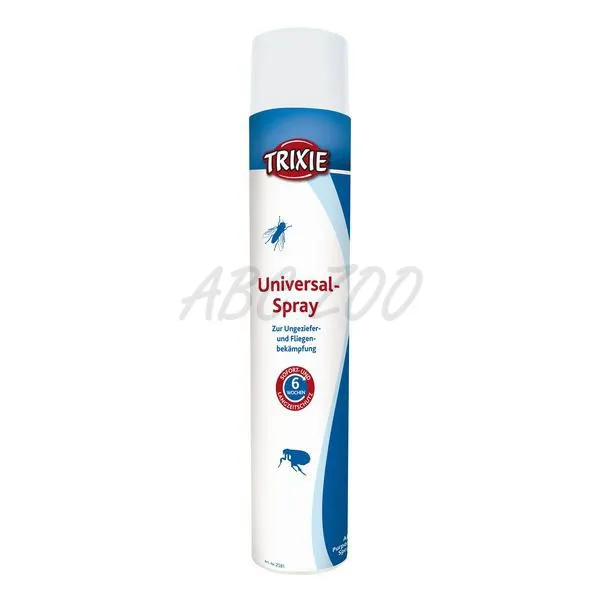 S účinným efektom a dlhotrvajúcimi účinkami po dobu šiestich týždňov. Tento všestranný sprej pôsobí proti otravnému hmyzu a parazitom (chrobáky, šváby, mole, pavúky, mravce, blchy, vši, kliešte, muchy). Sprej sa môže aplikovať priamo na napadnuté povrchy, predovšetkým na pelech psa, vankúše, koberce a miesta v interiéri kde sa pes často vyskytuje.