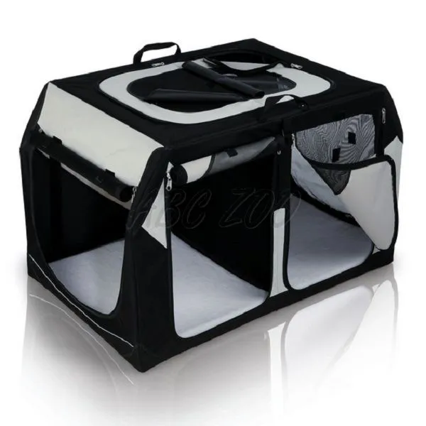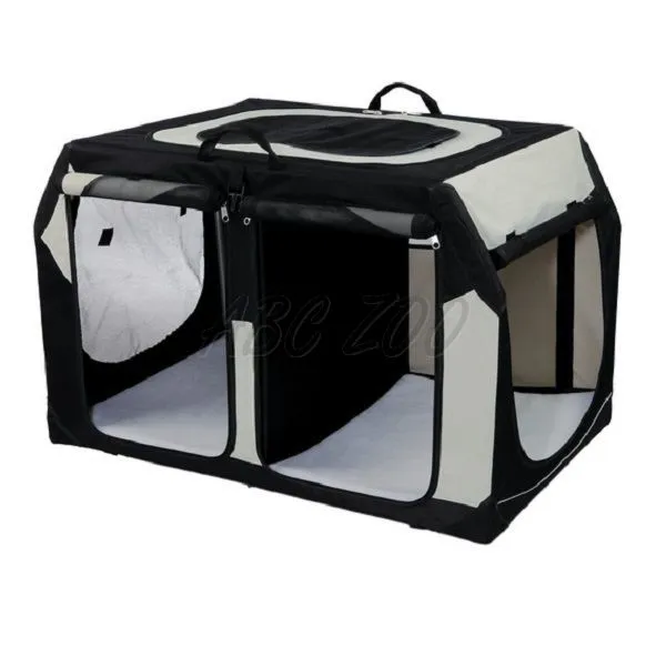 Prepravná dvojitá klietka pre psy a mačky s kovovým rámom, čierno-sivá. Viac detailov