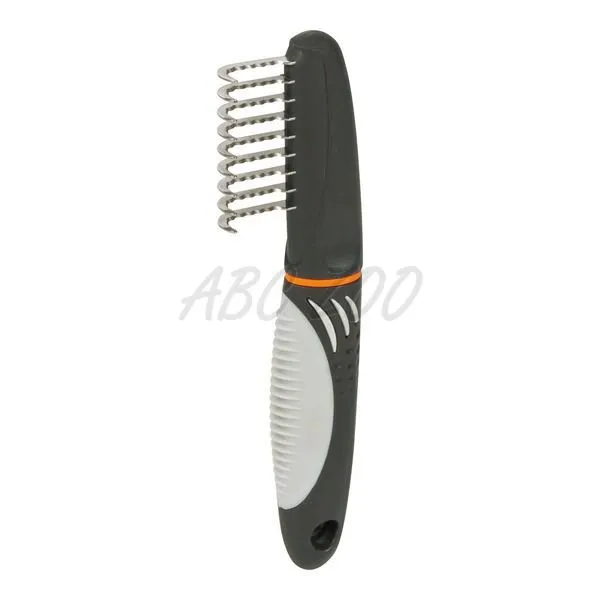 Hrebeň so zahnutými zubami pre psov a mačky dlhosrstých plemien s protišmykovou rukoväťou.